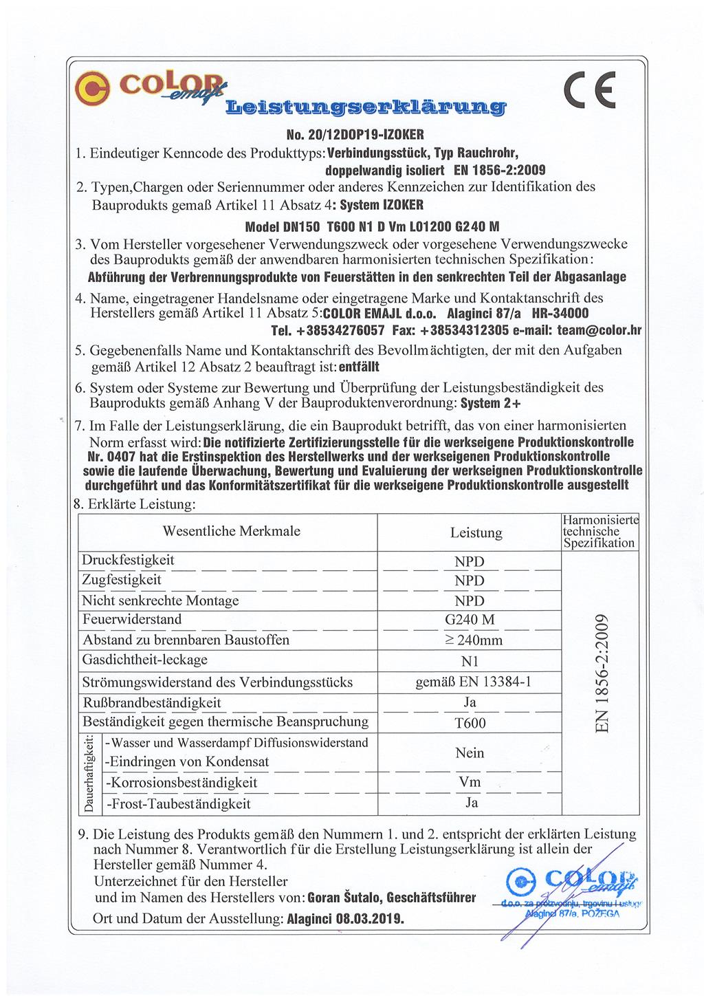 Izjave o izvedbi / Declaration of Performance / Leistungserklärung / Déclaration des performances